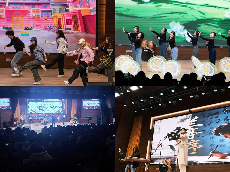 舞台上,多元艺术形式轮番登场。伴随着动感的开场舞,活动拉开帷幕,歌曲演唱或深情婉转或激昂高亢,旋律中流淌着青年学子对理想的追求;舞蹈表演或力量或柔美,灵动的舞姿诠释着青春的蓬勃朝气与无限可能;乐队演奏涵盖民乐与西洋乐多种类型,指尖流淌的音符交织成和谐的乐章。各类节目虽风格迥异,却共同围绕“青春向党·艺润校园”主旨,将思想内涵融入艺术表达,使红色基因悄然传承.从幕后的细致筹备到台前的倾情演绎,演职人员们的全情投入,观众们的热情欢呼为周五的夜晚注入了滚烫活力。不少同学表示,本次活动让大家在繁忙的学业之余获得了身心的放松,更在艺术熏陶中坚定了逐梦前行的信念。