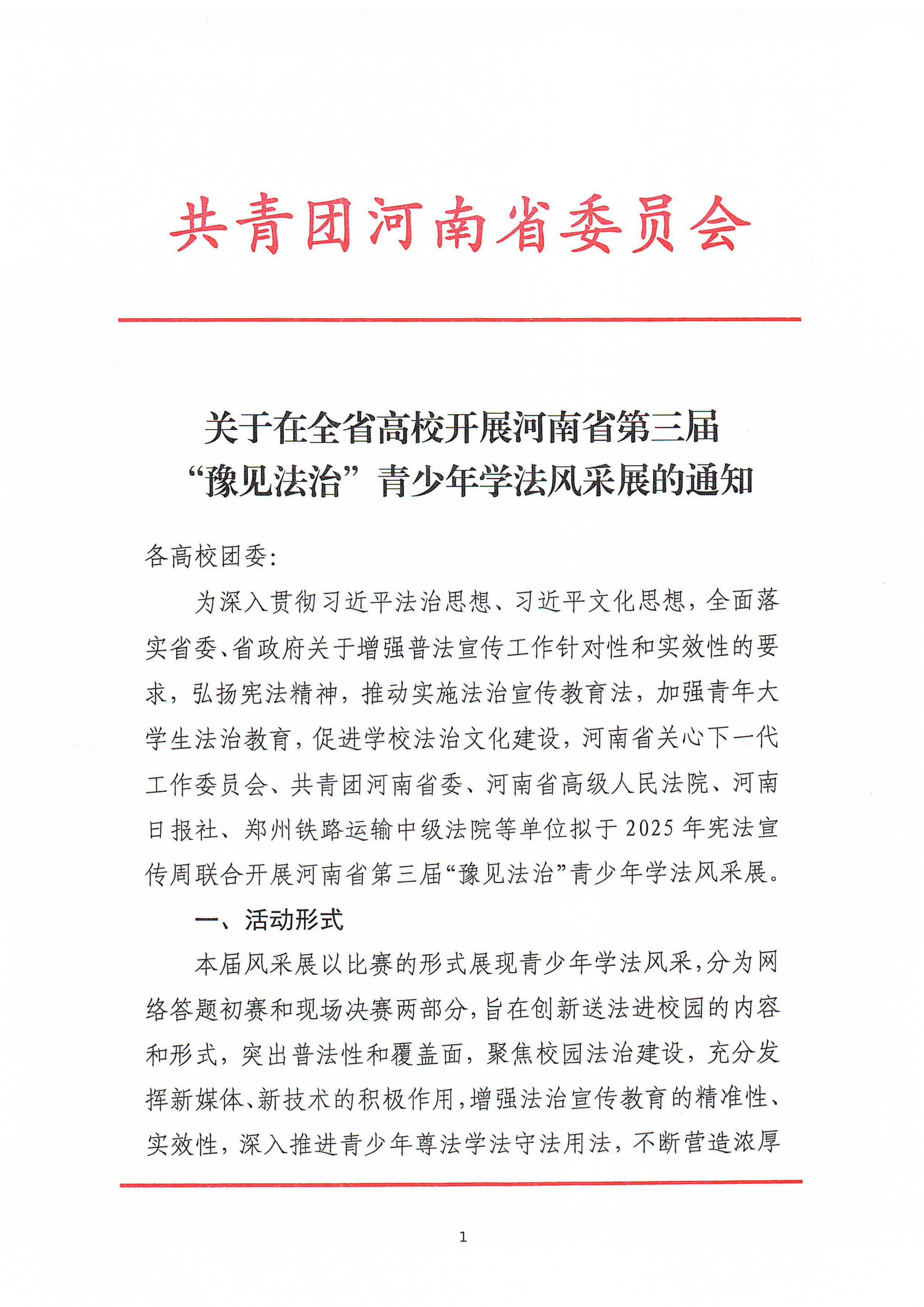 关于转发《关于在全省高校开展河南省第三届“豫见法治”青少年学法风采展的通知》的通知