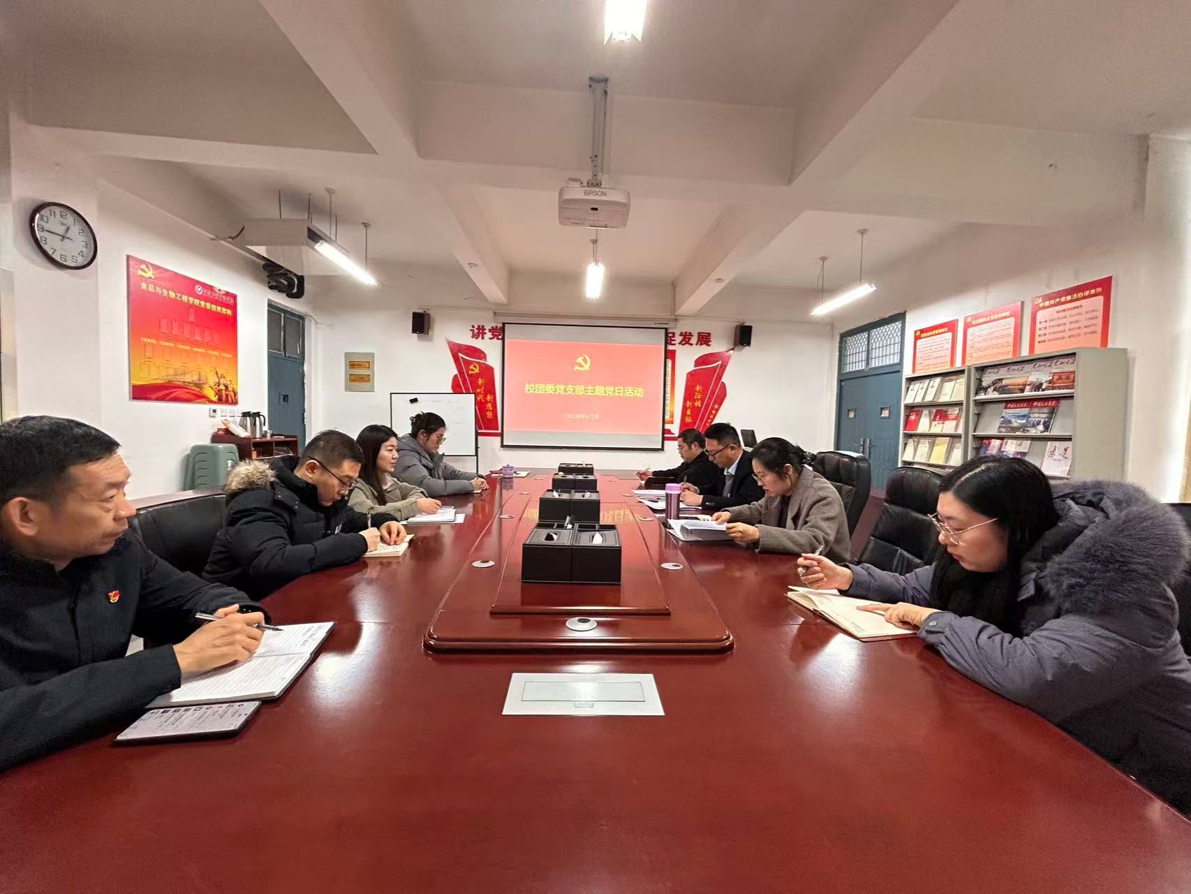 2025年12月30日,校团委党支部在龙子湖校区善知楼A426会议室开展主题党日活动,党支部书记王森主持,全体党员参加。